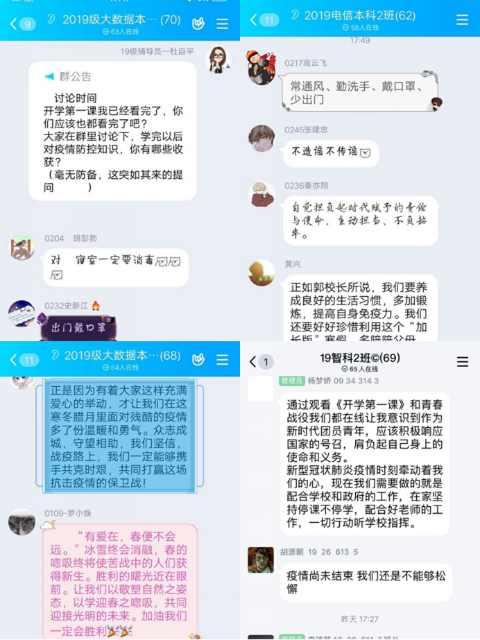 最后大家纷纷表示在这疫情严重的特殊时期,聆听这样一堂课程,犹如暖流滋润心田,心中充满了抗击疫情的信心和决心。