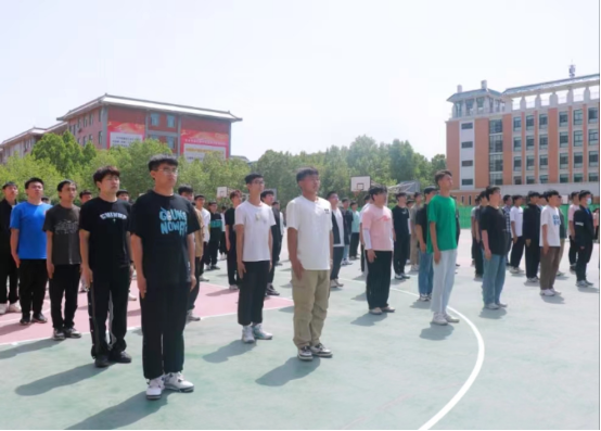 军训场上,参训同学动作整齐有力,口号嘹亮,信工学院新生正以昂扬向上、锐意进取的精神风貌进行训练。信工学院团委学生会在北生活馆篮球场建立爱心送水台,为军训新生送去关怀。